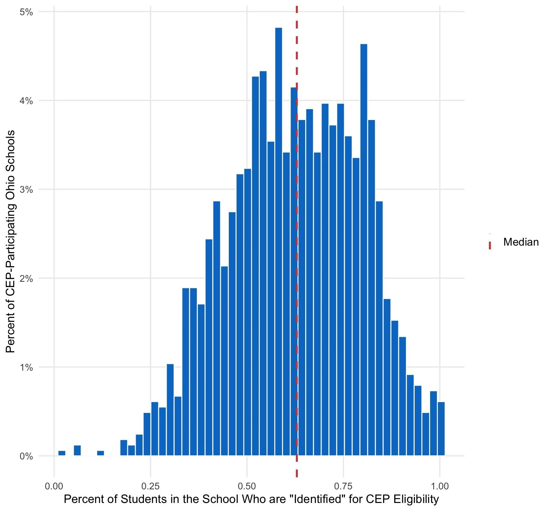 Distribution of “Identified Student Percentages” Across Ohio Schools Participating in the Community Eligibility Provision